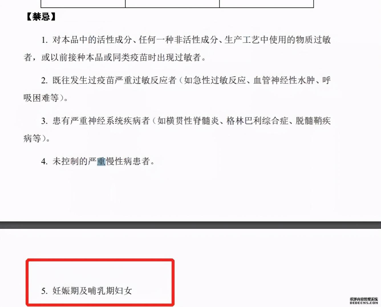 2021年2月18日,香港食物及卫生局发布的中英文版的科兴生物灭活疫苗说明书,显示妊娠期及哺乳期妇女为接种禁忌对象。图源:文献4